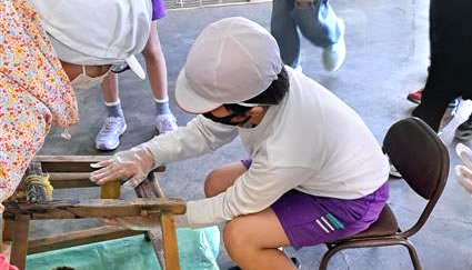 掛川市立横須賀小学校3年生の児童がおいもやで「干し芋作り」を体験。
