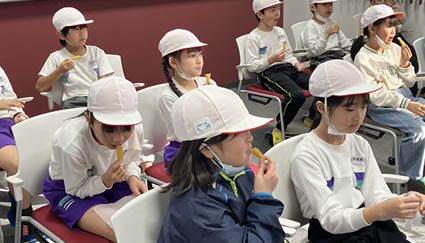またEC販売の説明や、職人が製造している干し芋の試食を行い、質問コーナーでは児童たちから熱心な質問が時間いっぱいに投げかけられました。