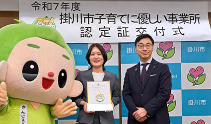 掛川市では、子育てに関する支援制度の整備や、子育てに関する支援制度を利用しやすい職場づくりなどの、子育てと仕事の両立環境整備に積極的に取り組む事業所を「子育てに優しい事業所」として認定しています。